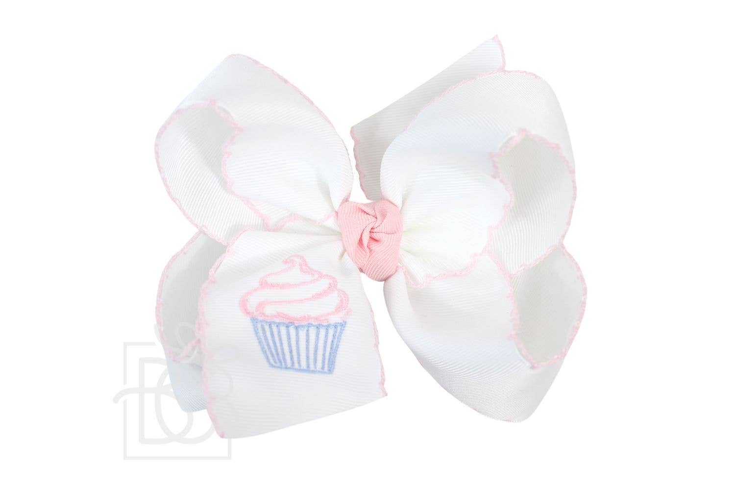 EMBROIDERED CUPCAKE CROCHET EDGE BOWS