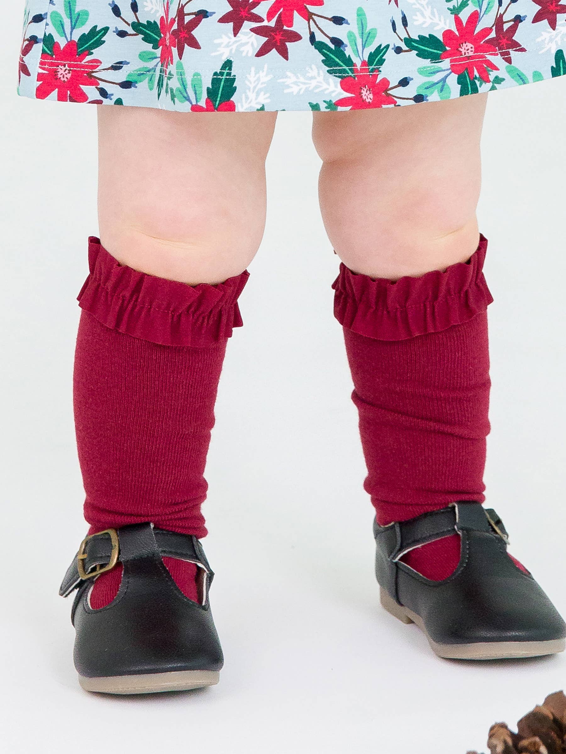 Girls 3-Pack Knee High Ruffle Socks - Dark Cherry, White, & Fir Green