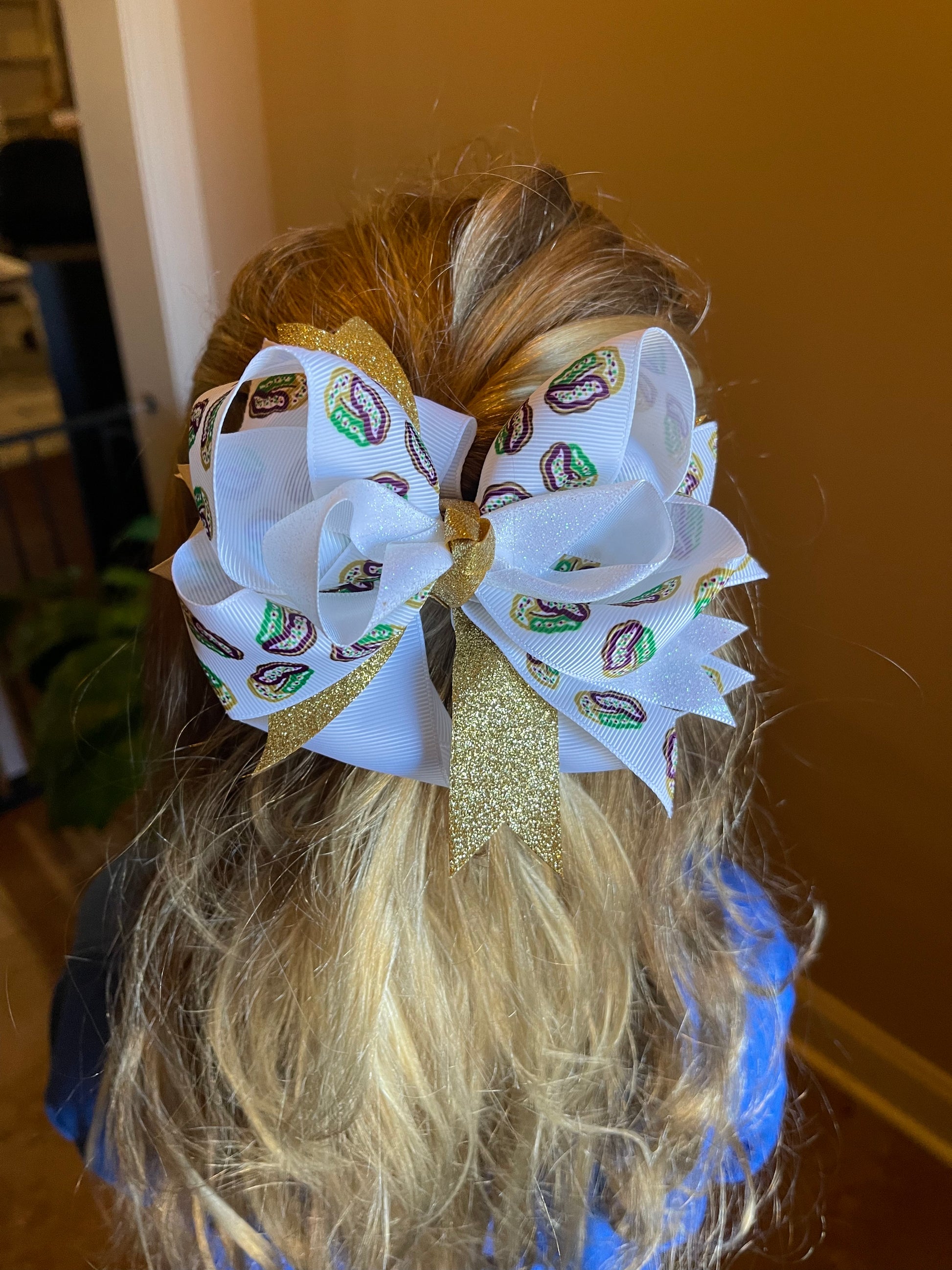 This is an original design by SongLily Wholesale. This is our adorable king cake hair bow! Perfect for little girls!